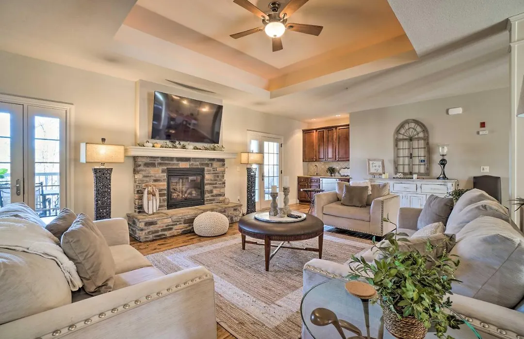 For a comfortable stay, Stunning Branson Villa With On-Site Golf Access offers in-room amenities like ironing facilities and air conditioning, along with high-speed internet and a television. The interior elements include a work desk, as well as a stone fireplace. Featuring a separate toilet and a shower, the bathroom also comes with hair dryers and bath sheets.